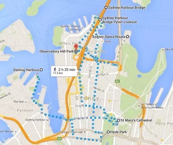 到达方式:沿着岩石区Argyle街,经Millers Point步行约15分钟即可以到达山顶
