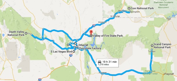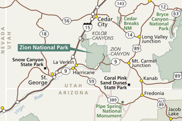 I-15转UT-9,UT-59,AZ-389转US-89A,转AZ-67,约6小时。