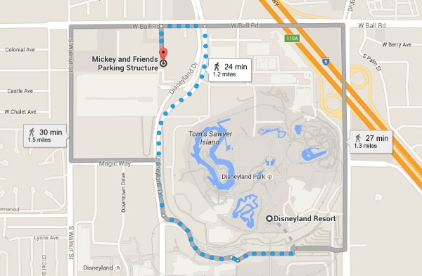 2.参观公园时,房车应停在Disneyland Drive和Ball Road交界处的南侧